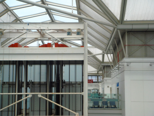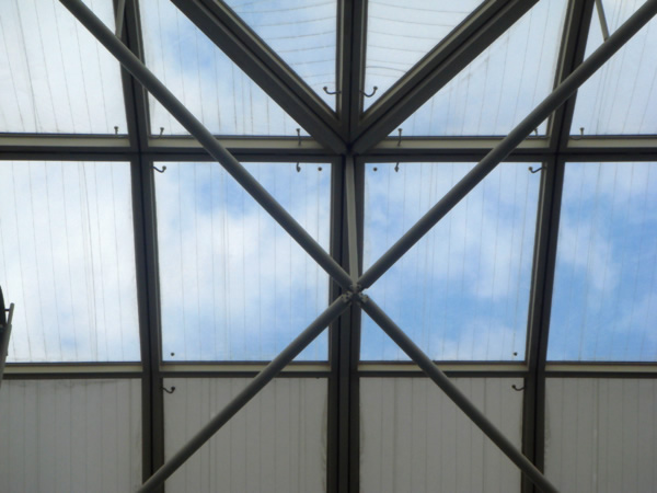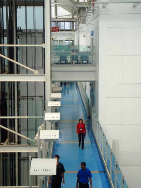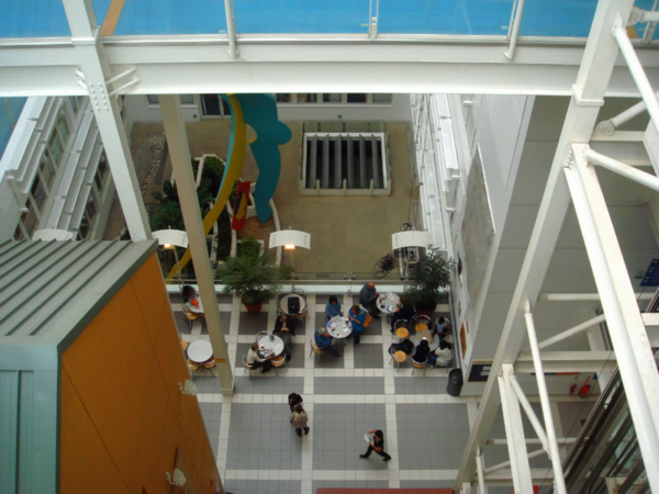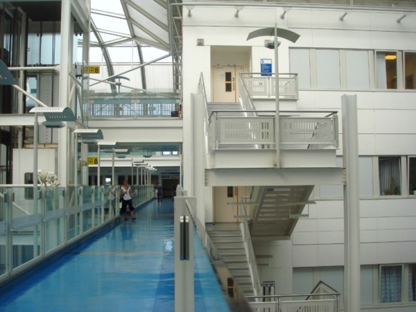 Gli architetti Stephen e Robson hanno progettato un'enorme tetto in plastica trasparente che ricopre un atrio, il più grande del mondo a ventilazione naturale - una superficie ancora più vasta dello stadio di Wembley.