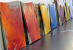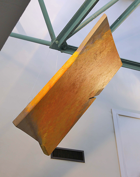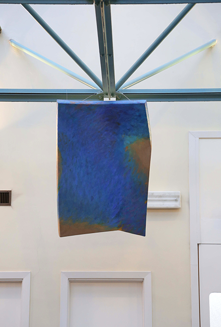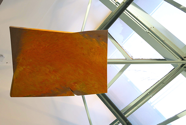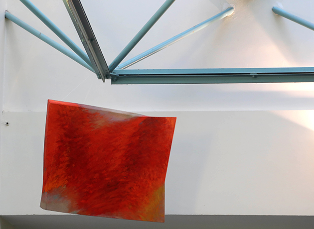 Tetsuro Shimizu di parole non ne ha mai sprecate troppe per raccontare la sua vicenda di malato, né per piangersi troppo addosso: con carattere da samurai d’altri tempi ha guardato oltre e avanti, mirando al suo domani senza pensare che quel triste presente potesse essere un freno o, peggio, un arresto. Se il lavoro dei medici è stato impeccabile, Tetsuro ha trovato grande forza non solo nella vicinanza della sua cara Ayako – moglie che con lui condivide la vita e lo studio artistico dove si confrontano nell’autonomia della propria ricerca pittorica – dei conoscenti e degli amici, ma anche nella sua pittura. I suoi dipinti, sono specchio fedele del suo animo e del suo pensiero, e quelli realizzati negli ultimi tre anni presentano un accento vitale ancora più evidente. I quadri portano sulla superficie il desiderio della perenne trasformazione delle cose: c’è il colore che vibra e s’ispessisce, trasportando con sé sottopelle mille altre sfumature che, emergendo, sollecitano la trasformazione della sua superficie. Un colore che è monocromo e iridescente allo stesso tempo; fermo nella solidità e mobile nel non fissarsi mai troppo al supporto del quadro. C’è la tela e anche questa si deforma sotto la spinta di forze invisibili che Tetsuro Shimizu porta alla luce. Tela e telaio, infatti, si destrutturano, si riempiono di sagomature, ferite, cuciture. Come abbiamo definito in una sua recente mostra, la sua opera è im-permanente. Non si determina mai, ma si rivoluziona sempre, come l’uomo, il suo pensiero, la sua storia.